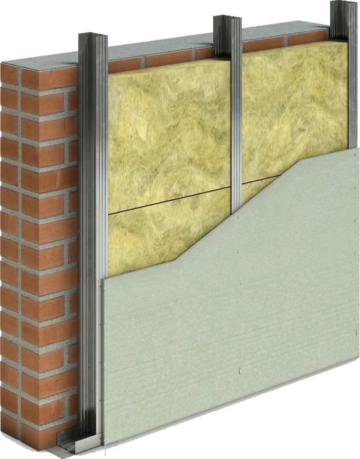 Конструкция стен. Плиты из минеральной ваты следует плотно размещать между стойками (деревянными или стальными), чтобы исключить зазоры. Даже зазор в 1% в слое изоляции может привести к снижению общих акустических характеристик стены на 50%. Для достижения лучших результатов часто рекомендуют использовать звукоизолирующие профили или специальный крепёж для гипсокартона.