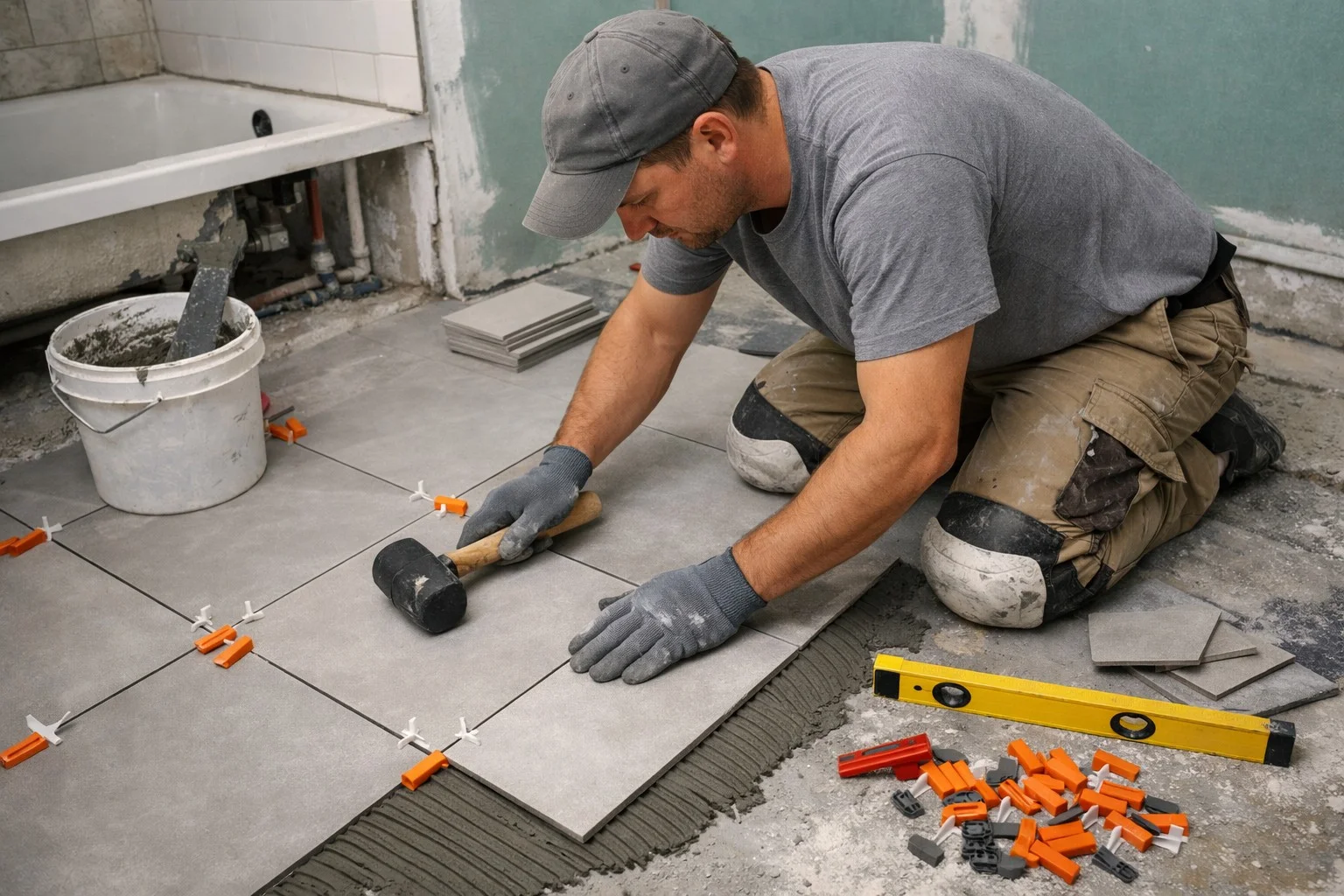 • Размер и тип кельмы (шпателя). Используйте кельму правильного размера и формы зубцов в зависимости от размера и типа плитки, чтобы обеспечить достаточное покрытие раствором. Для плитки большего размера и плитки с текстурированной обратной стороной требуются более крупные зубцы.