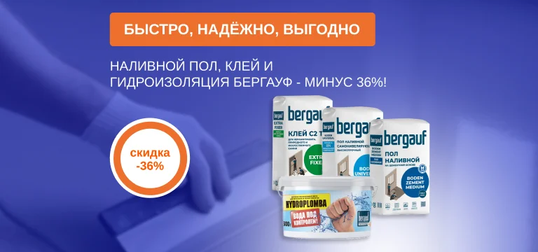 —Быстро, надёжно, выгодно: наливной пол, клей и гидроизоляция БЕРГАУФ - минус 36%!