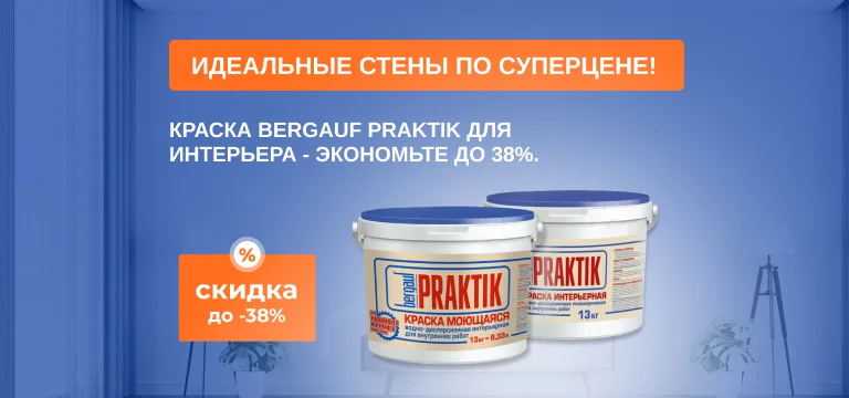Идеальные стены по суперцене! Краска Bergauf Praktik для интерьера - экономьте до 38%.
