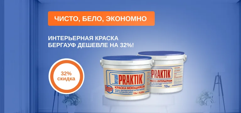 Чисто, бело, экономно - интерьерная краска Бергауф дешевле на 32%!