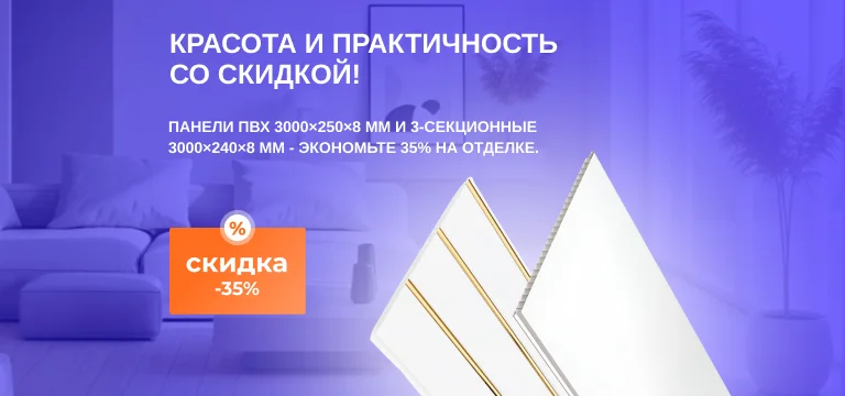 —Красота и практичность со скидкой! Панели ПВХ 3000×250×8 мм и 3-секционные 3000×240×8 мм - экономьте 35% на отделке.