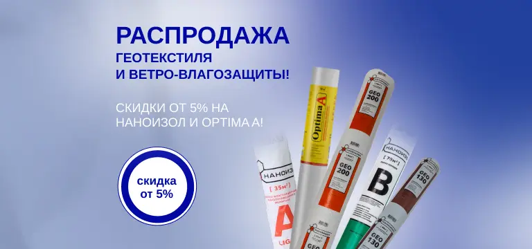 РАСПРОДАЖА Геотекстиля и Ветро-влагозащиты! Скидки от 5% на НАНОИЗОЛ и Optima A!