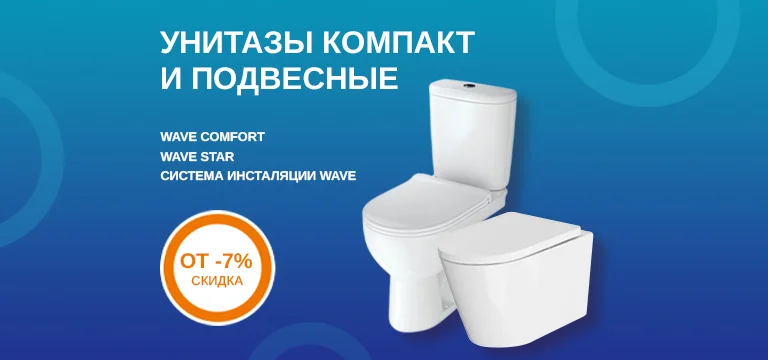 —Обновите ванную со скидкой 7%! Подвесные унитазы WAVE STAR / COMFORT с сиденьем дюропласт и микролифтом + надежная двухрежимная инсталляция.
